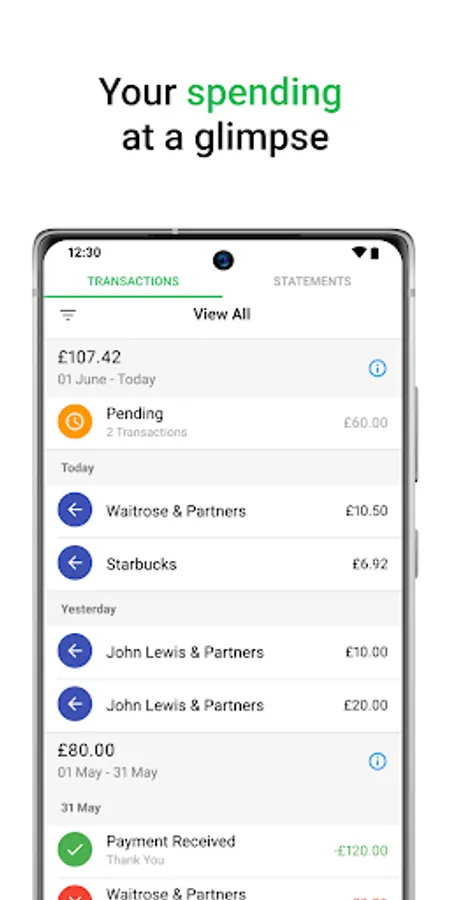 John Lewis Credit Card Screenshots