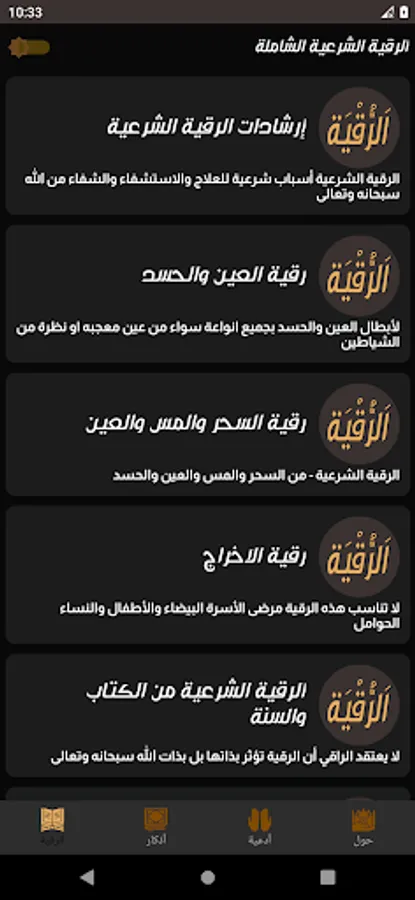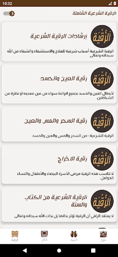 The definition of the application of the legal ruqyah written without a complete written net. Now you can read the legal ruqyah for magic, envy, the eye and touch. A comprehensive paper from the book and the Sunnah. With the utmost ease by downloading the application that works without the net for all.