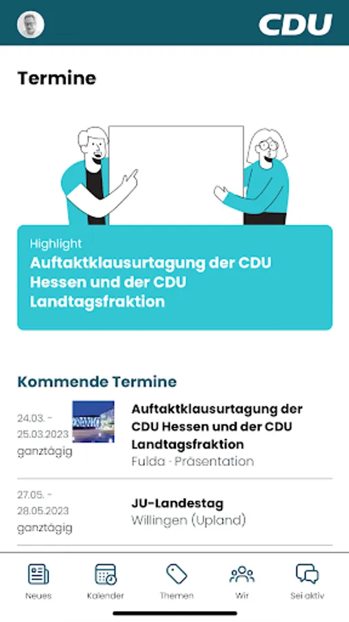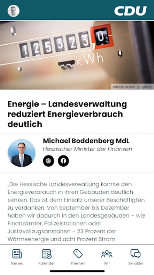This is the official app of the CDU Hessen with the latest news and an internal area for members. It is currently still in a test phase. You will be informed in good time about the official start, when access will also be possible for you as a CDU member. We ask you for a little patience until then.