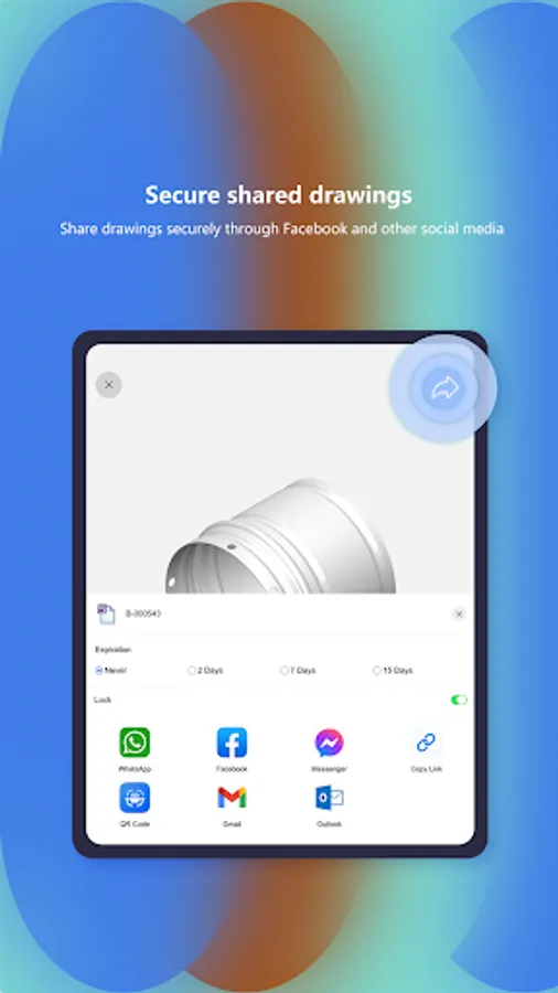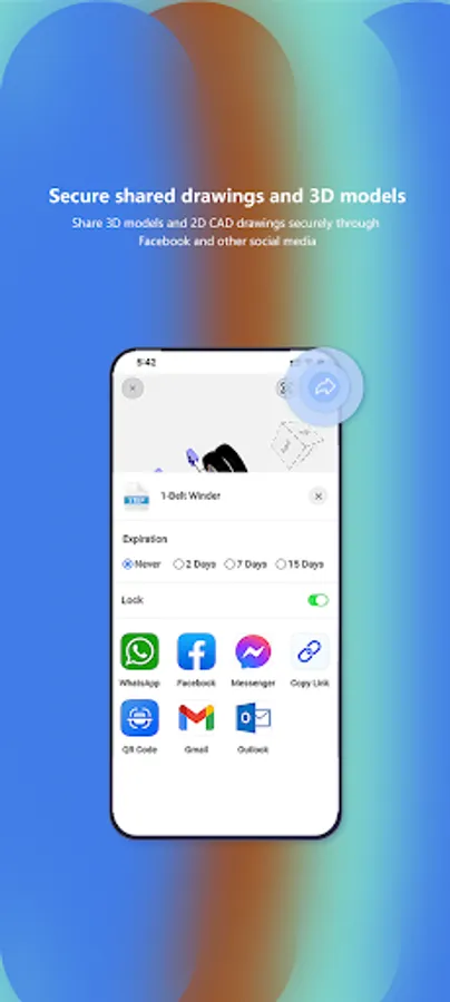 Share 3D models and CAD drawings stored on mobile phones, computers to others with one click, and provide [public sharing] and [encrypted sharing]. Encrypted sharing can set access password, validity period, access times, viewing authority, etc., so as to realize secure sharing.