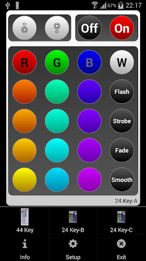 This application simulates the 44 / 24 keys ir remote control distributed with RGB LED devices from china.