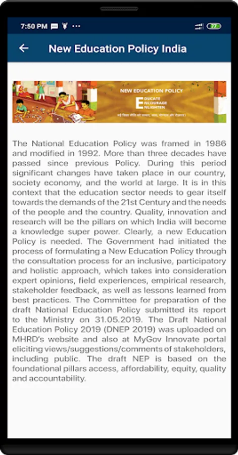 This App Provides Information about New Education policy (NEP) launched by ministry of HRD(Education ministry).