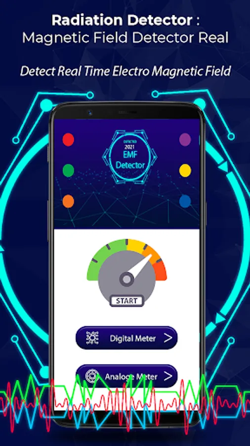 Emf detector use built-in device magnetometer to detect the Electromagnetic Fields strength that lies near to magnetic and electrical device. The emf finder shows the result in microtesla (µT). Electromagnetic finder display results to the user with real emf graph. Emf field finder or emf meter is one of the best emf radiation detector and emf analyzer for all Android users. emf is also known emf meter.