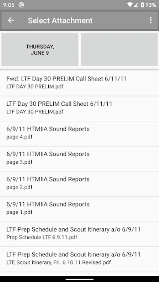 Simply press the app button and Open Callsheet uses artificial intelligence to find the PDF attachment in your email that looks like a film production call sheet and matches today’s date.