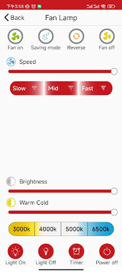 Though the app,users can control the fan lamp and the ceiling light, such as control the light ON or OFF, adjust the brightness of the light、adjust the speed of the fan. One APP can add one or more ceiling light or fan lamp.