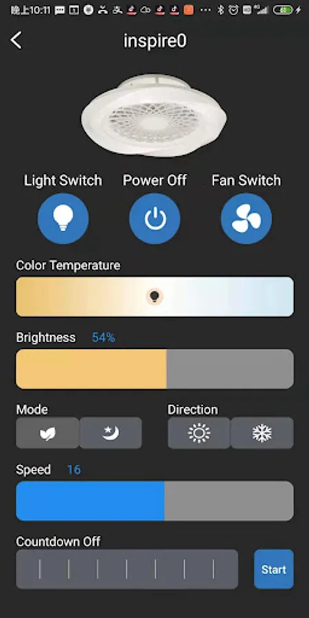 The app use BLE signal to control the fan lamp or ceiling lamp which can add to the system. It can adjust the light's color temperature, brightness, fan speed, etc.