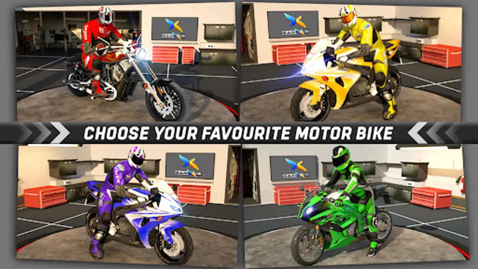 Welcome to the full of stunts bike racing attack presented by Gamexis. Dare to do! strap on the helmet, pull over the safety guards in reckless stunts of bike racing games. Don't underestimate other bike races, face many bike racing games opponents in new bike simulator games career mode. Save your health by preventing attack, kick the bike race rivals to kill the motor rush gangster's. Reach the finish line before the bike racing rivals to win the challenge in motorcycle race game. Collect nitro bottles, coins, and blue shields for more fun motorbike racing games experience. Unlock many racing bikes, weapons and traffic riders for more thrilling bike attacks of motorcycle games.