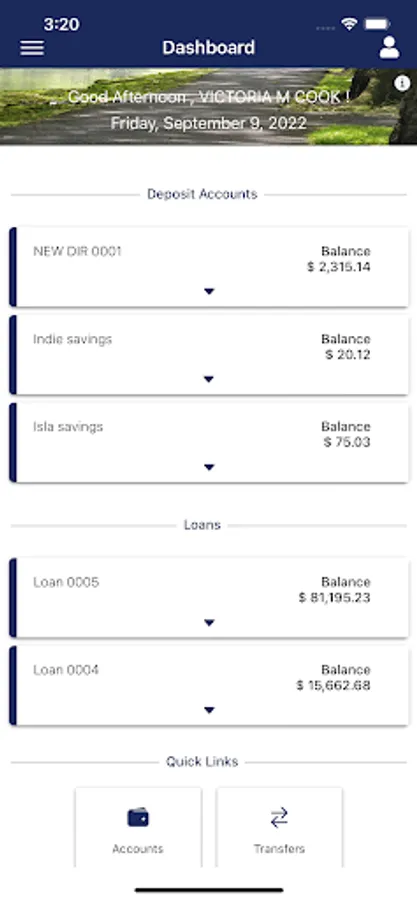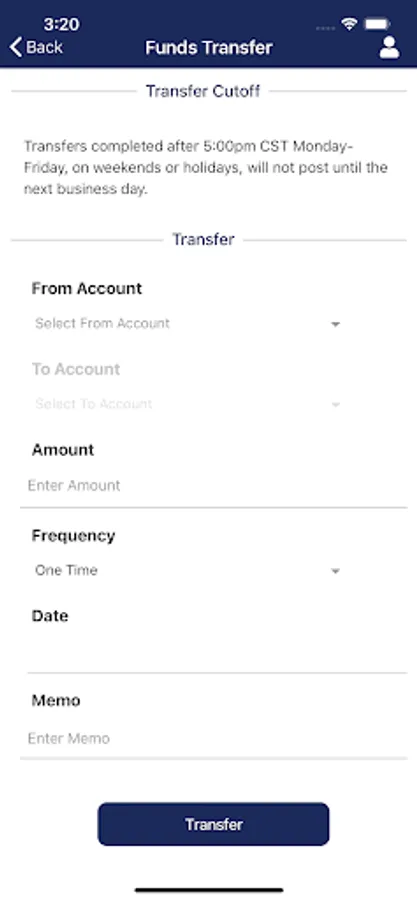 **Online customers must first setup transfer and bill pay accounts prior to using these features.