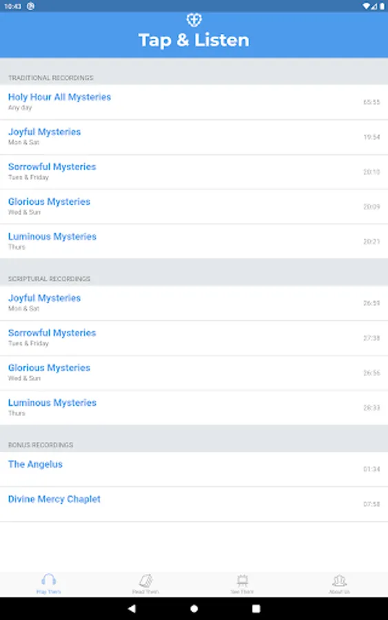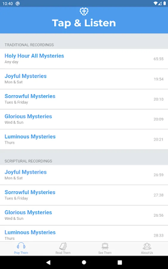 Instant access to four traditional Rosary recordings, four scriptural Rosary recordings and the brand new Holy Hour Rosary (Perfect for those who want to pray all twenty mysteries on the life of Christ in one rosary prayer). Download once, listen anywhere!