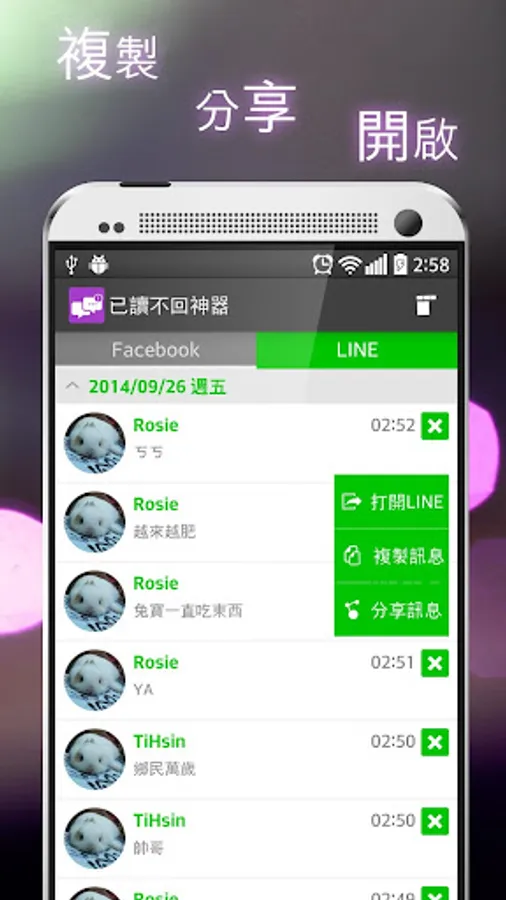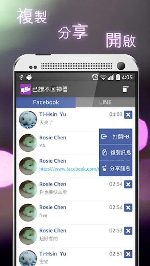 已讀不回神器支援LINE, Facebook Messenger, Facebook專頁小助手等通訊軟體