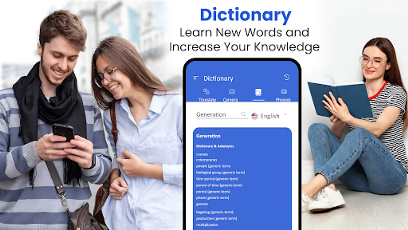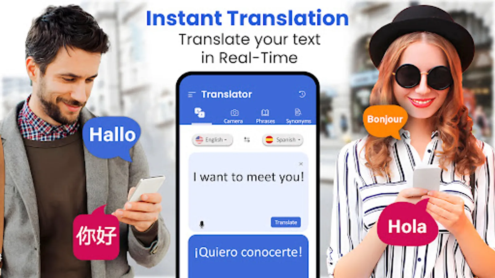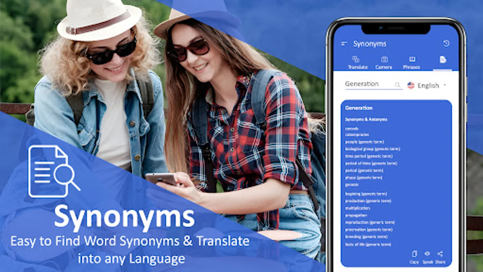 free translate language & voice translator app provides the word’s synonyms and antonyms after searching your word in 100 languages.