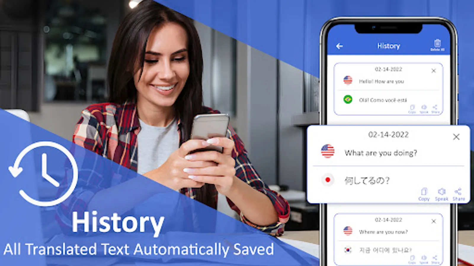 Translate Language Translator & Translation app provides the facility to share your translated word or sentences with others, sharing from the share button option or you can listen from speak button and copy on the clipboard.