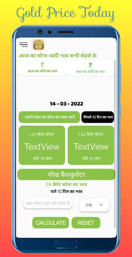 available in the Gold app.Get all the gold prices instantly in our app.Get 24 Karat 22 Karat pure gold rates are available for top cities in India.