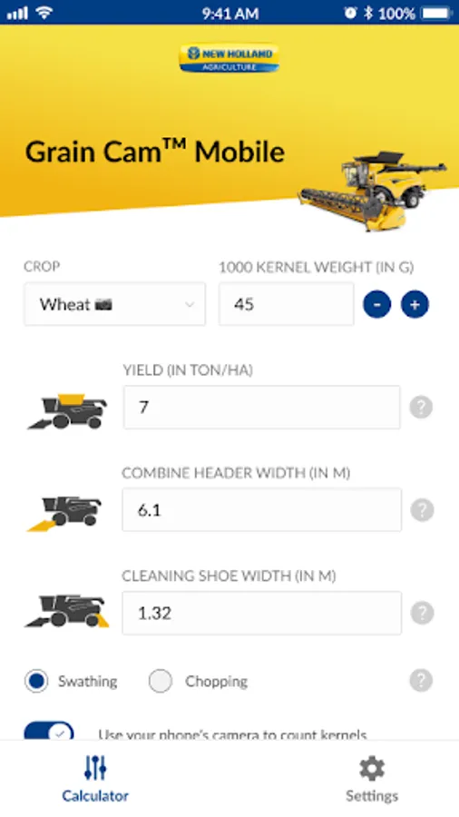 Use this app to calculate grain loss during harvesting and to optimally adjust your combine harvester.
