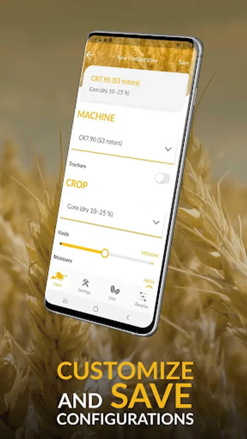 Select your New Holland combine harvester model, pick the crop type you are about to harvest and enter the conditions of your field: in a matter of seconds you will get the recommended settings for your job.