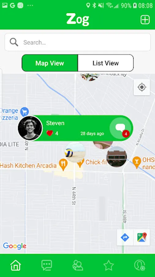 Rather than posting to a timeline or a feed; your posts are organized geographically onto a map. The map allows you to interact with other user's posts in a specific location. With Zog you can connect with neighbors, organize events, find new local businesses and the best local restaurants, or check out a new city you are traveling to and see what is going on before you arrive.