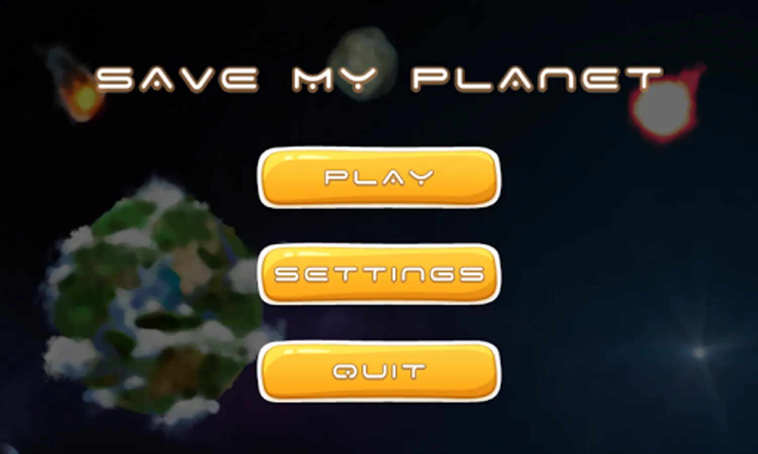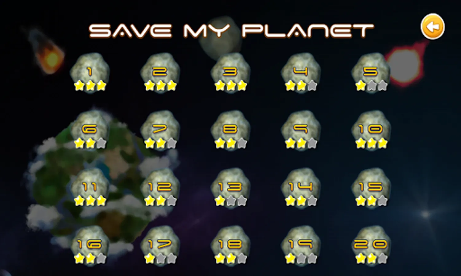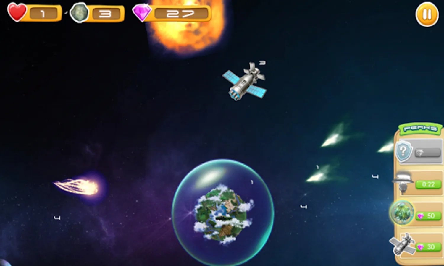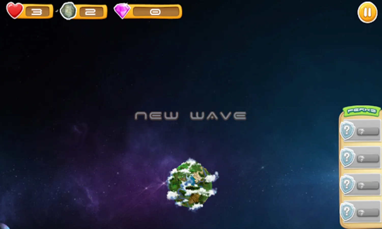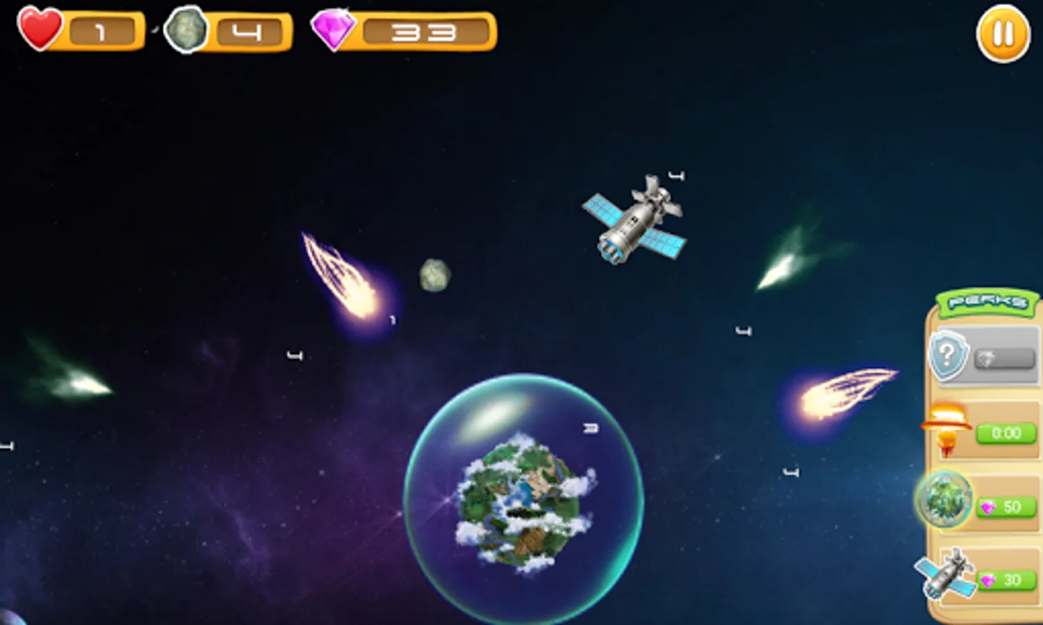 Rescue the planet from attack of asteroids. Use the force and the weapon. Destroy asteroids and receive crystals. Use crystals for purchase the weapon. Some waves of asteroids attack the planet each level.