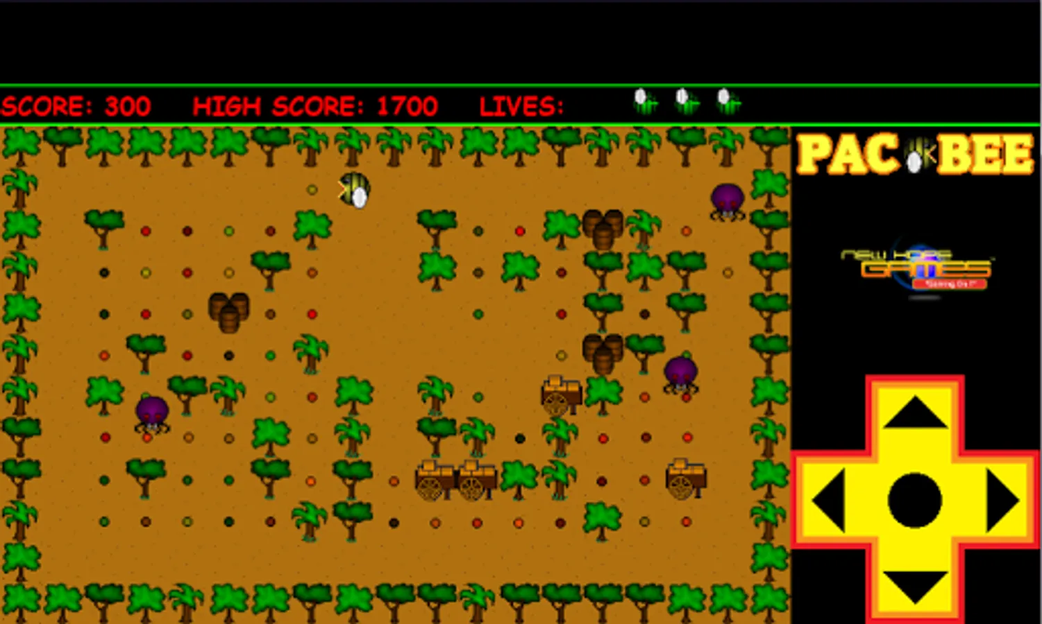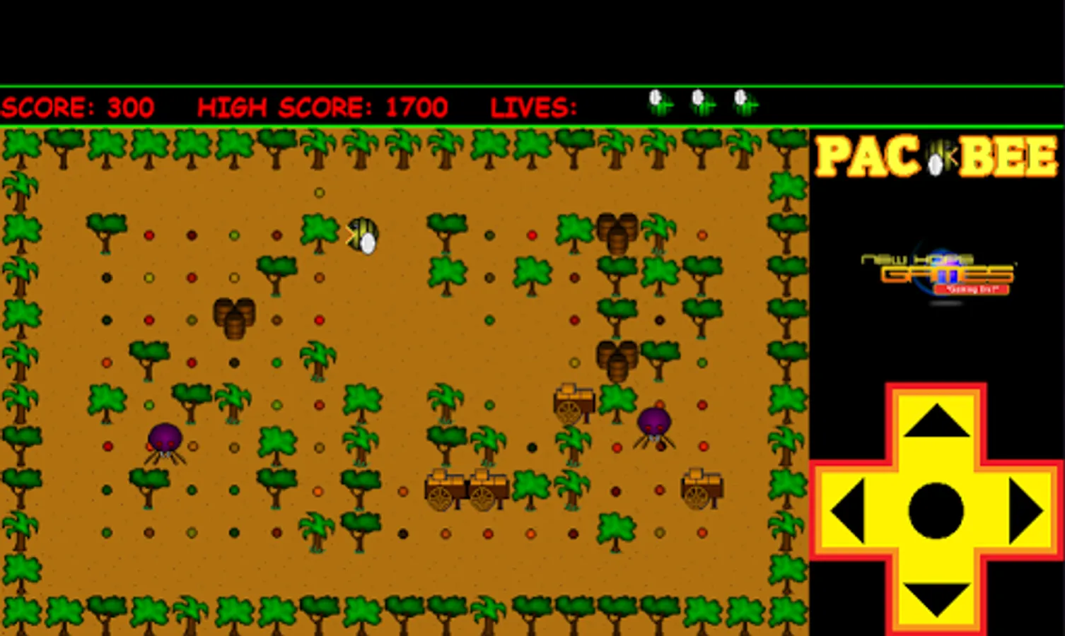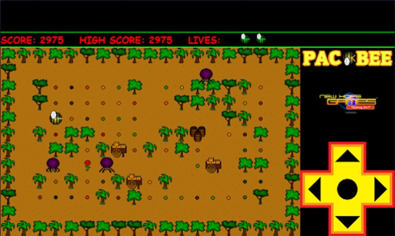 Introducing PAC BEE! A fun FREE game for all ages heavily inspired by the classic arcade games! Move your bee around a maze of trees and objects eating food. Avoid the evil spiders. Eat the special flowers to gain speed, super power and ability to eat the evil spiders. Pickup axes to clear a path or one time kill of an evil spider.