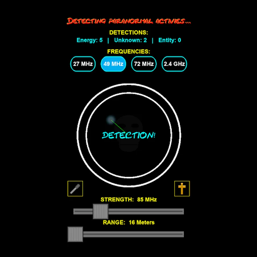 Have you ever aspired to be a ghost hunter? Seize the opportunity now! Activate this app in places you suspect are haunted or where you sense a presence. Try to capture paranormal activity by tweaking the frequencies up to 2.4ghz, signal strength, and range, which can extend up to 128 meters!