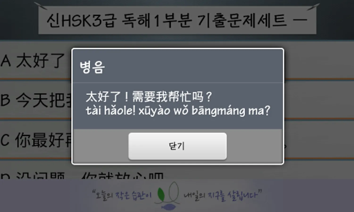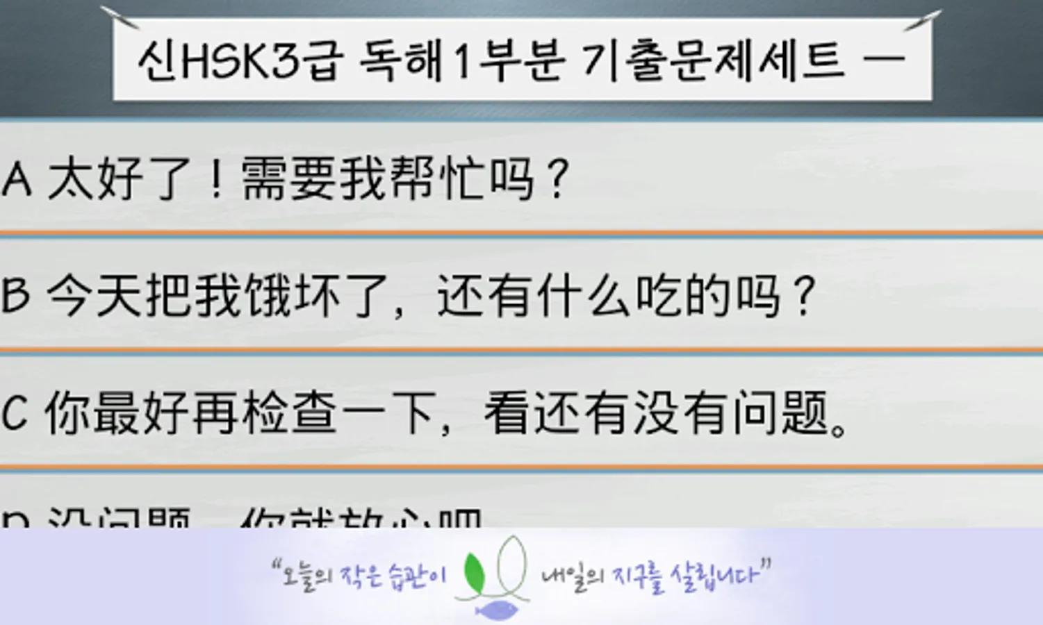 It is a new HSK3 grade reading Pinyin app that is a self-study smartphone application that is designed to be able to study by yourself whenever and wherever the new HSK output problem is solved.