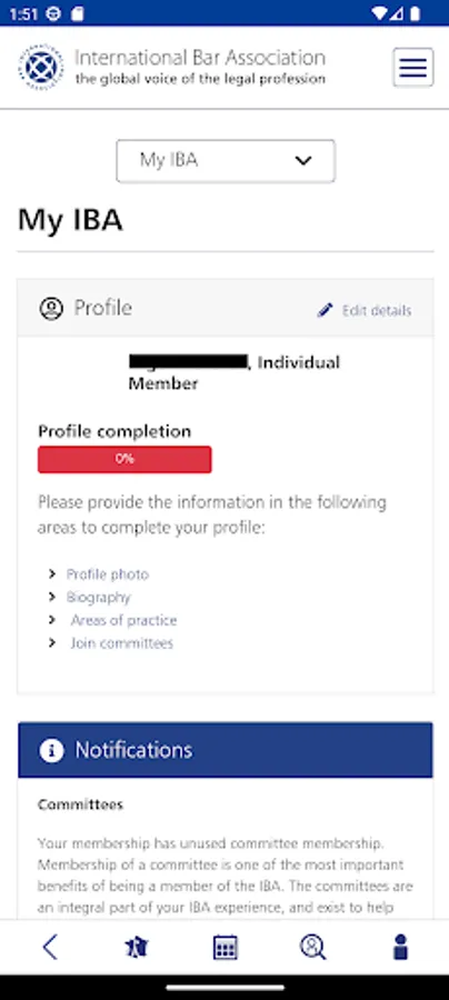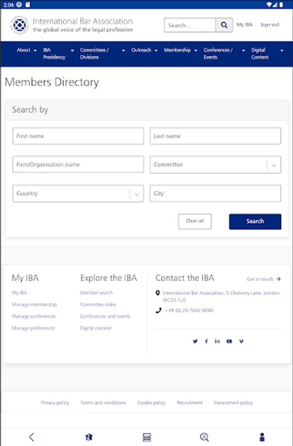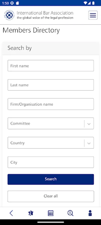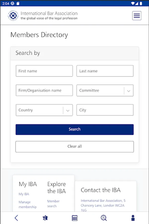 • Search members’ profiles using Name, City, Country, Committee and Area of Practice