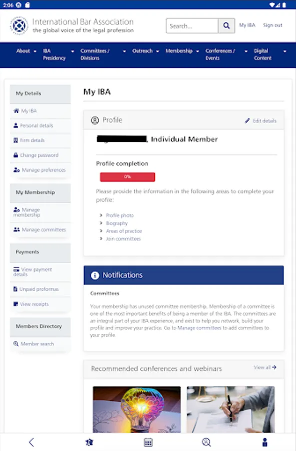 • View your IBA profile