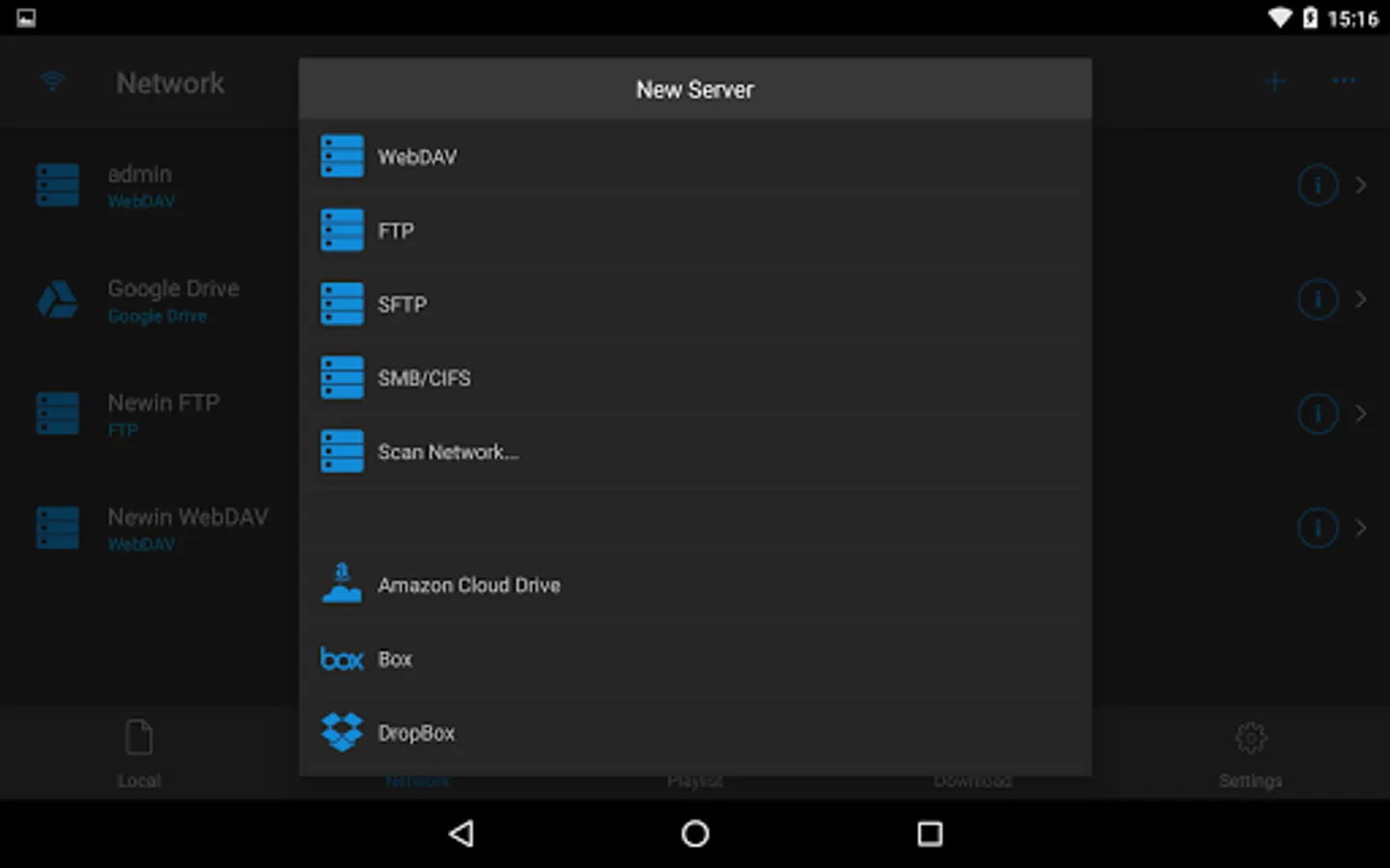- Supports WebDAV, FTP, SFTP, HTTP, SMB/CIFS, UPnP/DLNA