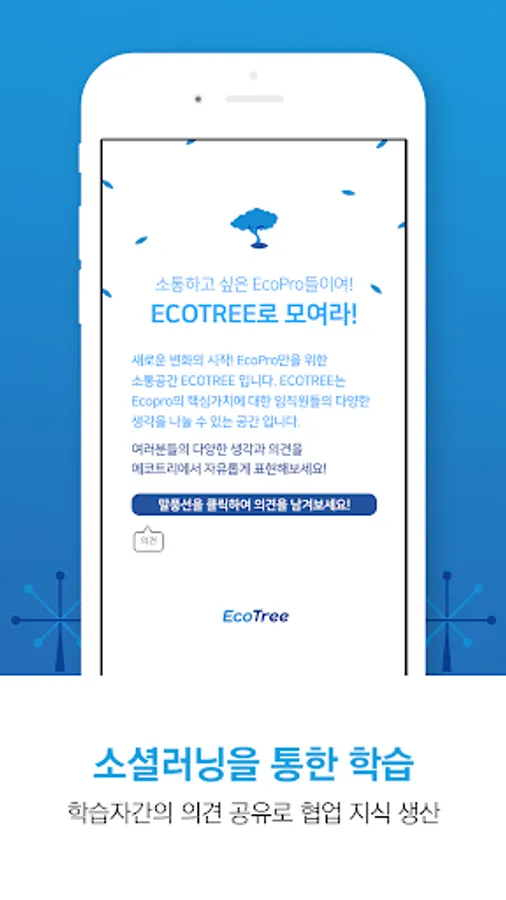 Pre-learning through mobile, sharing EcoPro news, presenting various ideas, various events! ECOTREE will be waiting for you with various contents in order to establish the right communication culture.