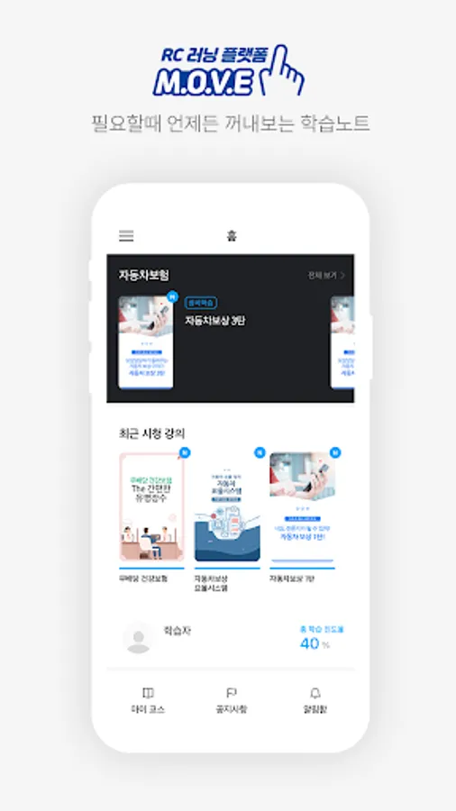 -M.O.V.E is an interactive education platform that provides educational materials on the overall contents related to insurance. It provides various types of contents such as videos and quizzes, and you can access anytime, anywhere, 365 days a year to learn what you need.