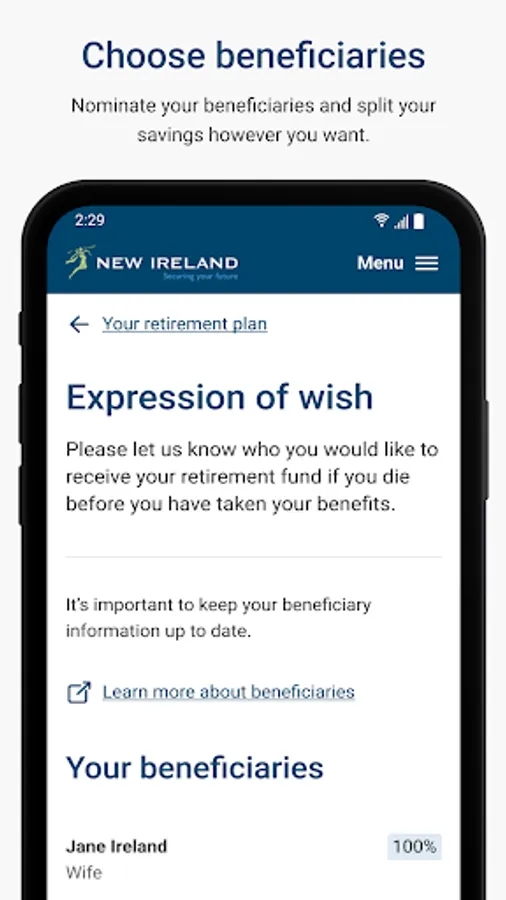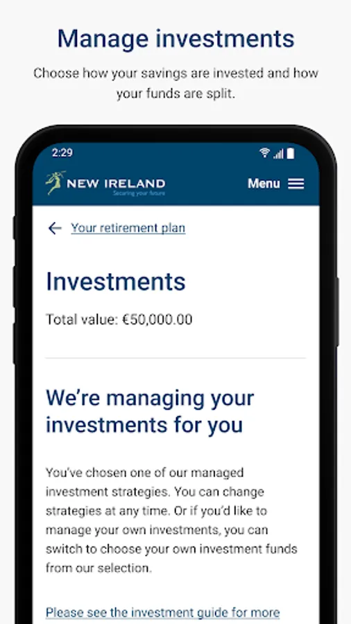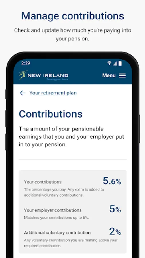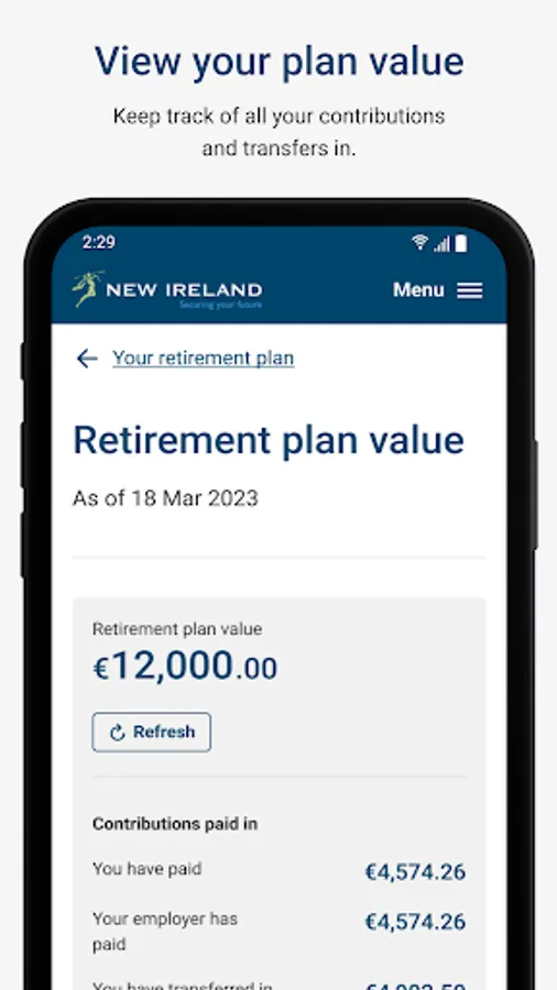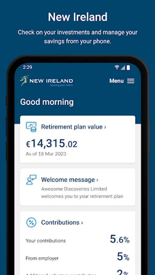 The New Ireland Assurance Employee App will transform the future of retirement savings for a new generation. It allows you to pick and choose the most suitable investment funds, track your pension balance in real time on your phone and increase contribution levels when you can afford it. Engaging you with your retirement plan like never before!