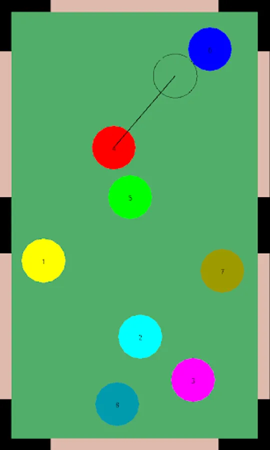 Simple billiards with random initial state. Goal of the game is to score all the balls in the pocket.