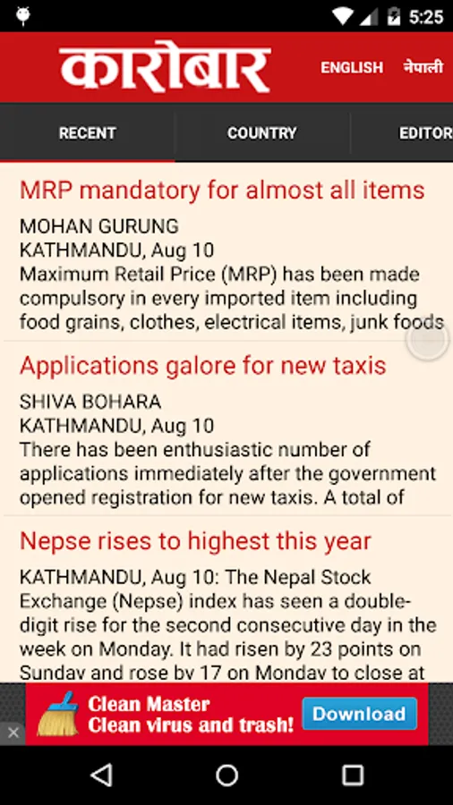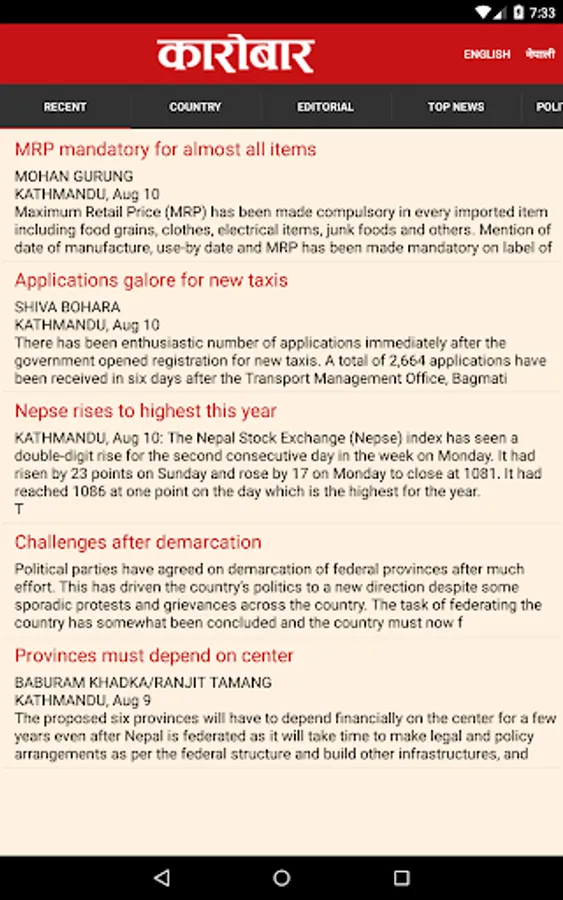 Aspirations of the people for empowerment and prosperity have been rising with each political change in the past two and half decades. Karobar believes that the country can attain economic height to fulfill those aspirations only through democracy and liberal economy. Established in 2009 by a Non-resident Nepali (NRN) as the first economic daily in the country feeling the need of a more meaningful presence of the NRNs and the private sector to fulfill such rising aspirations of the people, we pledge with our readers that we will raise every issue related to the people to make Karobar useful for every Nepali and not just remain a newspaper for the economic/business community only.