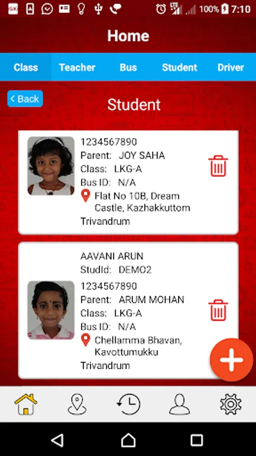 School module has functionalities like add/edit classes ,divisions, teachers, buses, students and drivers. Most outstanding feature is the live tracking of all the school buses. Travel history of buses are also recorded and saved which can be viewed anytime.