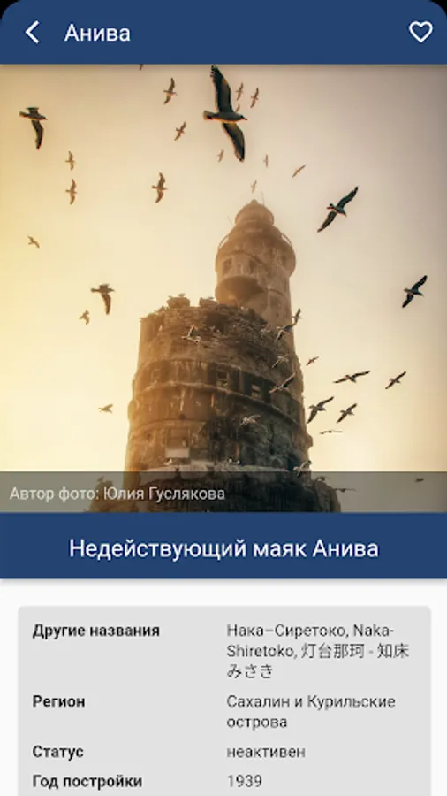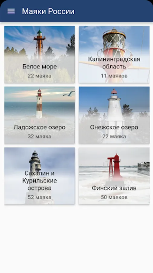 This application will introduce you to the most interesting lighthouses in Russia. Convenient functionality will allow you to find out the main characteristics of the lighthouse, read its history and even pave the way to it in your favorite navigation application.