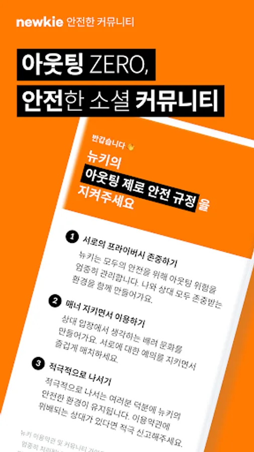 Newkey constantly strives for a safe environment without outings, such as the introduction of the ‘Outing Zero Safety Regulation’, ‘Report’ and ‘Block’ functions, data security management, and the formation of a Korean operation management team.