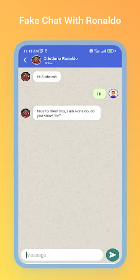 This is a dual purpose app for making happiness for Ronaldo and Messi Fans. This app has a extraordinary option to make a fake video call with Ronaldo and Messi and another interesting thing is you can chat with both of them using fake chat option. you can share with your friends and family and enjoy it.