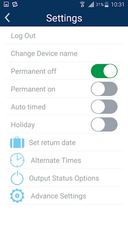 There are 4 operating modes, Auto, Permanent off, permanent on, and holiday. There are also advance and boost functions.