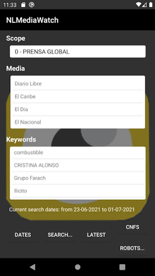 Through the NLMediaWatch Mobile App, the user has the possibility to navigate from their cell phone and check the latest news of interest stored on the platform.