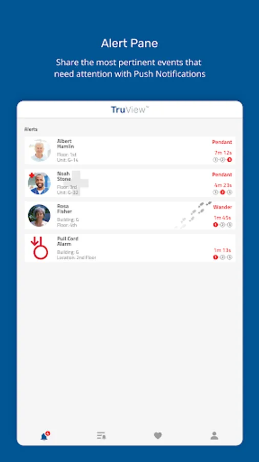 CenTrak’s TruView Alert Manager is a mobile application used to efficiently notify Caregivers and first responders to TruView Alerts and allows interaction, such as accepting, clearing, and providing description of the event.
