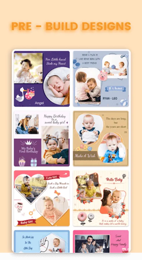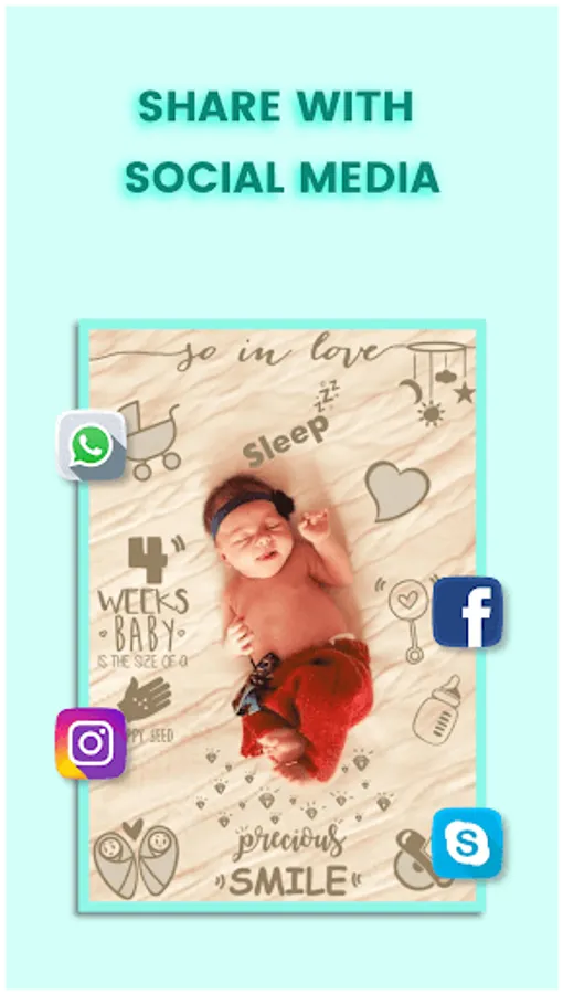 • Design baby photo and share baby pics with friends and family, Create cute photo memories.