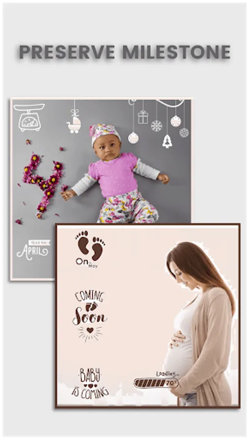 Baby Photo Editor - Baby, Pregnancy Day Calculator App makes your pregnancy, baby pics, and baby milestones into beautiful visual stories.