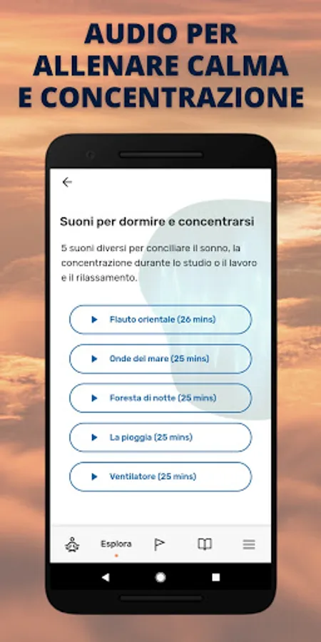 Guided meditations will guide you step by step in practice, while the theoretical part will allow you to learn the basics to meditate correctly and obtain the benefits discovered by science.