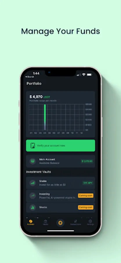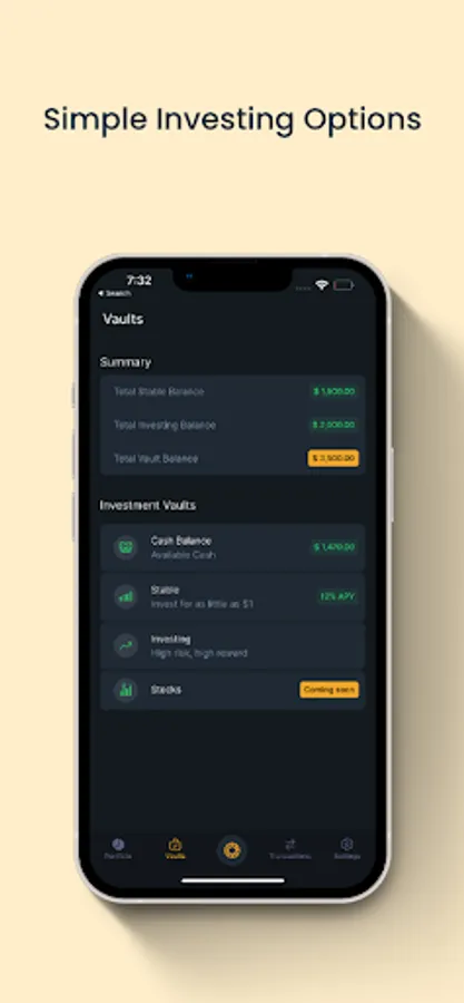 INCOME FROM YOUR MONEY, RISE provides investment accounts that you can store funds in called vaults. Each vault is tied to a different investment vehicle that is managed for you. RISE makes it simple to dive in and start generating returns in seconds.