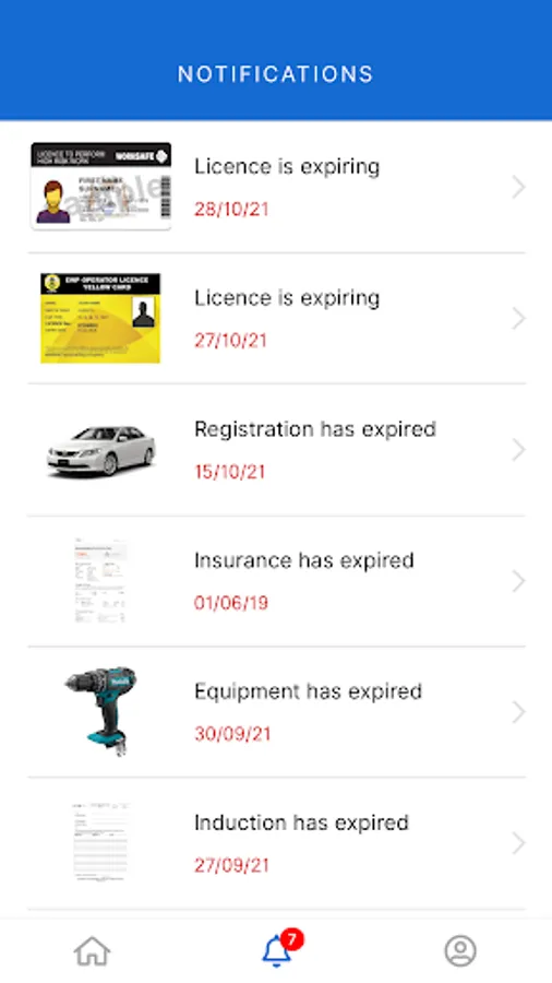 * Notifcations can be applied to provide reminders in the weeks and days before a particular document/card expiry date.