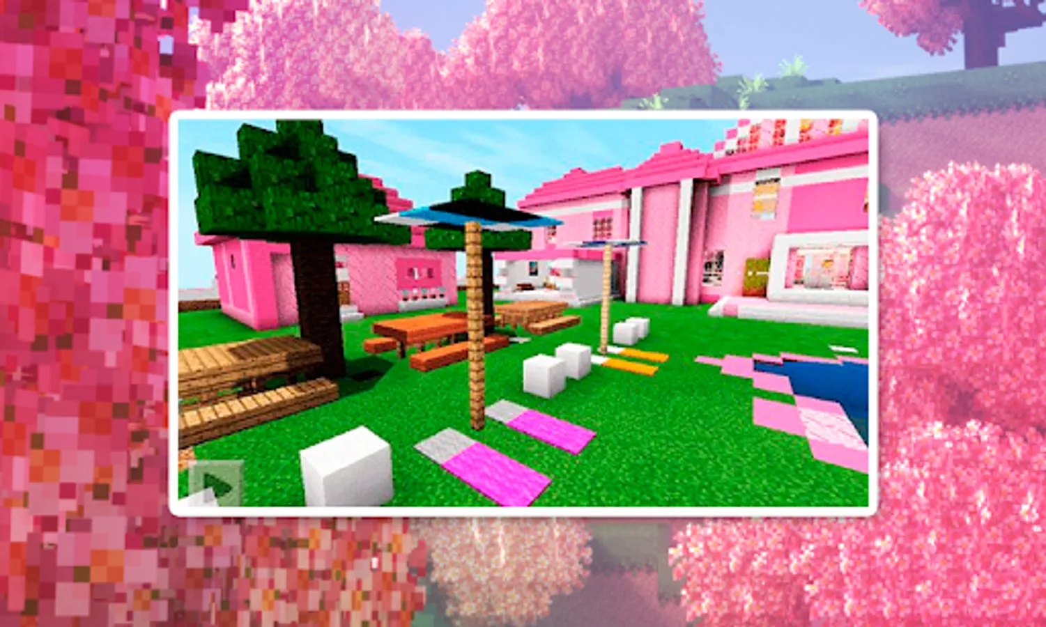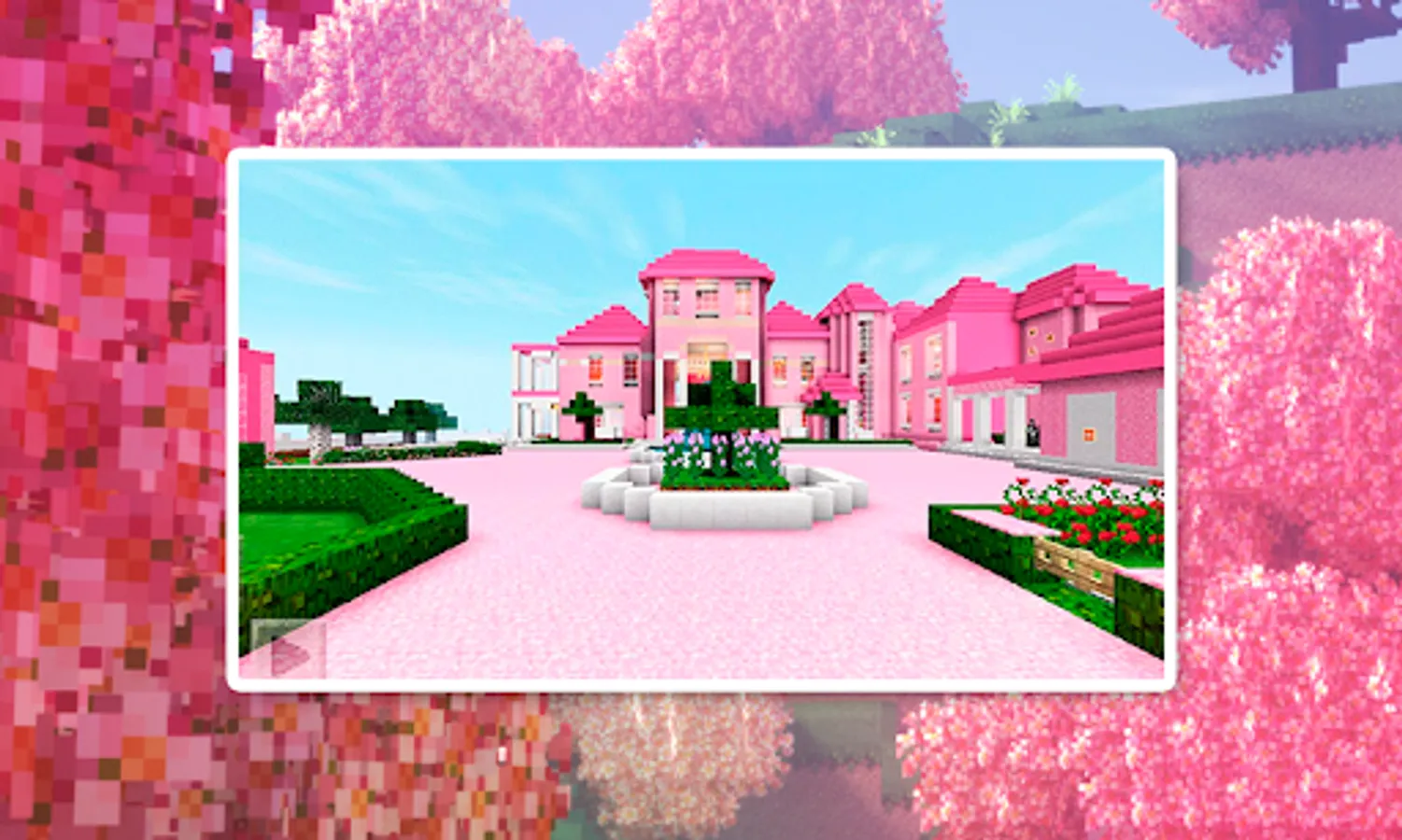Mod for MCPE Pink Barbie skinned map of a Craft map in Maps with decorated rooms. Hello, my home is pink! This new DIY map features a renowned dollhouse. Explore the magnificent pink mansion using this map for craft, free of charge. It's practically the entire house being pink. The backyard pool, hot tub, kitchen, bunker, and much more are also there. This house looks futuristic and modern.
