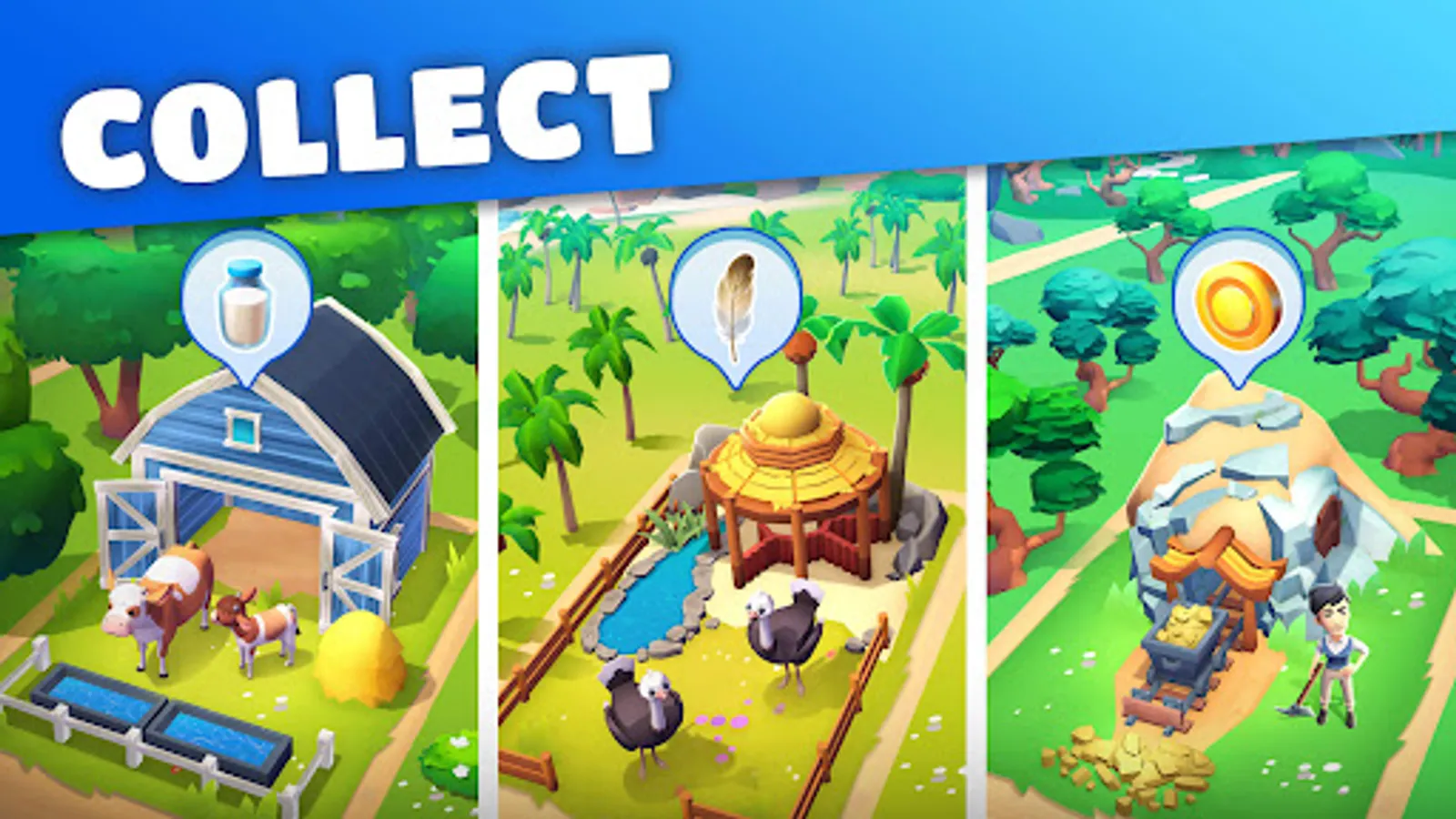 Start from scratch, expand and upgrade your tropical village. Plant, grow, and harvest your favorite exotic fruits and vegetables. Send your workers around the island to explore and gather resources to craft goods!