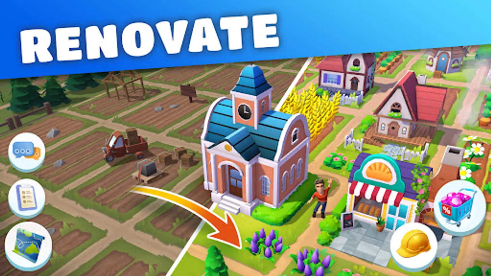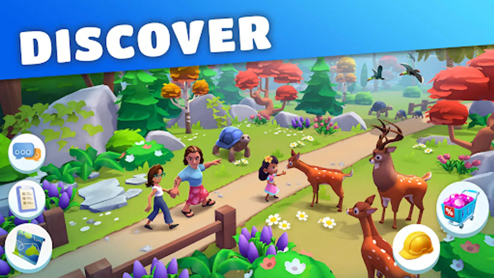 Take care of your village by raising lovely farm animals like chickens, cows, goats, horses, pigs, and many other cuddly companions.