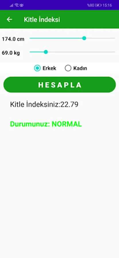 Bu uygulama ile kolayca yapmış olduğunuz birkaç ölçüm ile Vücut Kitle İndeksinizi (BMI) Günlük Kalori İhtiyacınızı hatta daha detaya inerek günlük almanız gereken protein, karbonhidrat, yağ alımlarınızı öğrenebilirsiniz. Eğer fazla kilo aldığınızı düşünüyorsanız uygulamamız üzerinden yağ oranınızı rahatlıkla hesaplatabilirsiniz. Üstelik bunlar için sizden hiçbir ücret talep etmiyoruz. Yapmanız gerek tek şey Uygulamamızı İndirmek.