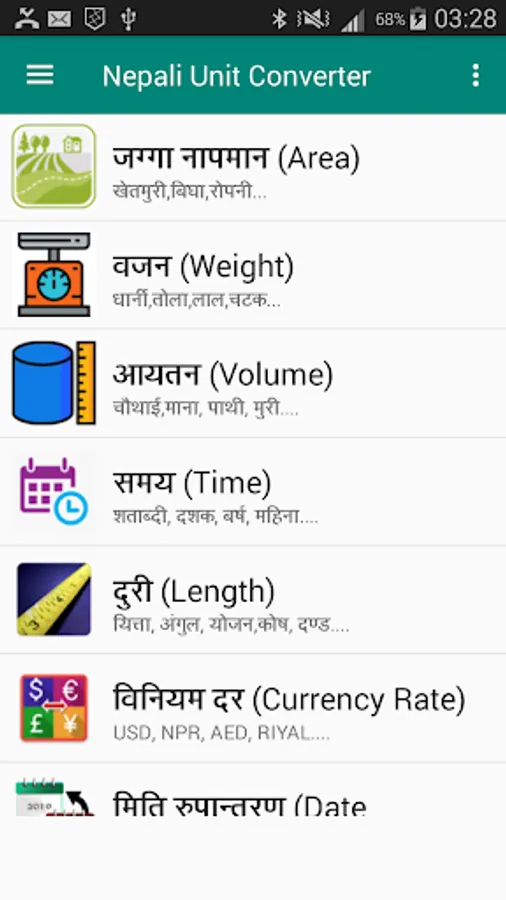 This app is useful for inter-converting local Nepali units and to some intentional units. Use this app to get the idea of Nepali units. We will add more International Measurement system as per the request of our users.