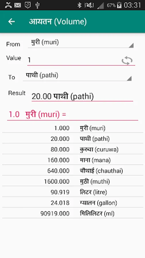 - Volume include: Muri, Pathi, Churuwa, Mana, Chauthai, Muthi & Litre